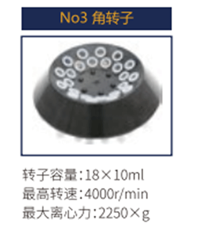 No3 | 角轉(zhuǎn)子 | 18X 10ml | 4000 r/min | 2250Xg |