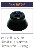 No6 | 角轉(zhuǎn)子 | 12x15ml | 13000 r/min | 19460xg |